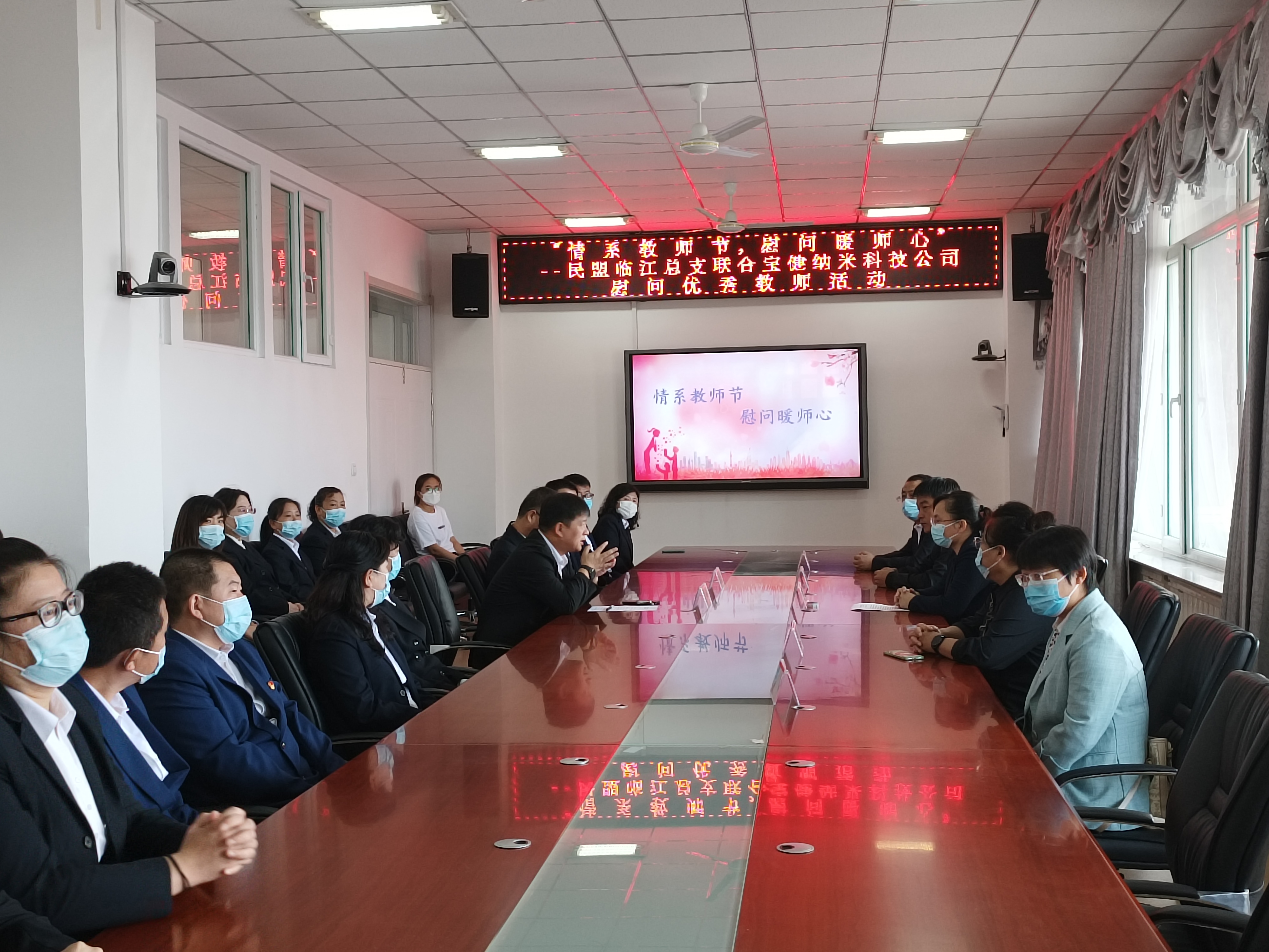 9月9日,在第38个教师节来临之际,民盟临江总支委员会联合临江市宝健纳米科技公司开展了“情系教师节 慰问暖人心”活动。在教育局组织召开座谈会,慰问优秀教师代表,向他们致以节日祝福和诚挚问候。