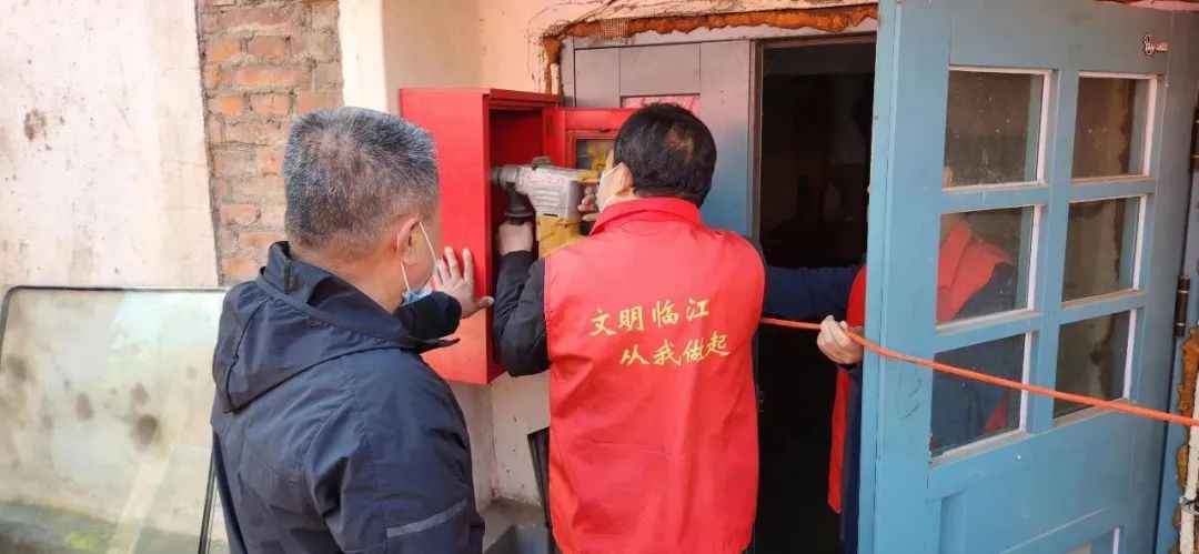 为进一步筑牢社区消防安全“防火墙”,保障居民生命财产安全,6月9日临江市政协全体机关干部为大湖街道民生小区1号楼、2号楼安装灭火器箱及灭火器,用于完善小区居民住宅楼消防设施。