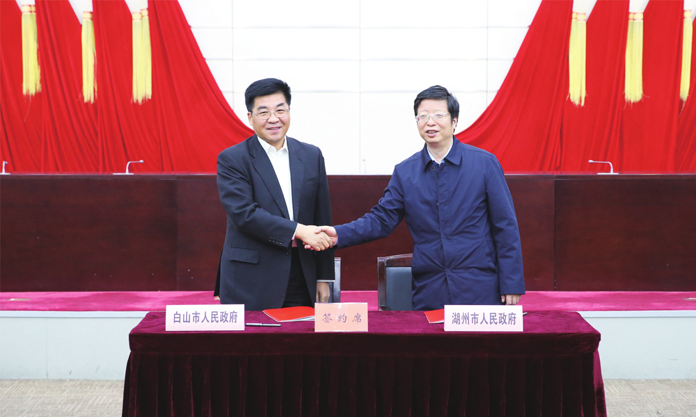 绿水青山就是金山银山;冰天雪地也是金山银山。习近平总书记的重要思想把北国边城和江南水乡连在了一起,党中央、国务院对东北老工业基地的亲切关怀让白山和湖州携手前行。